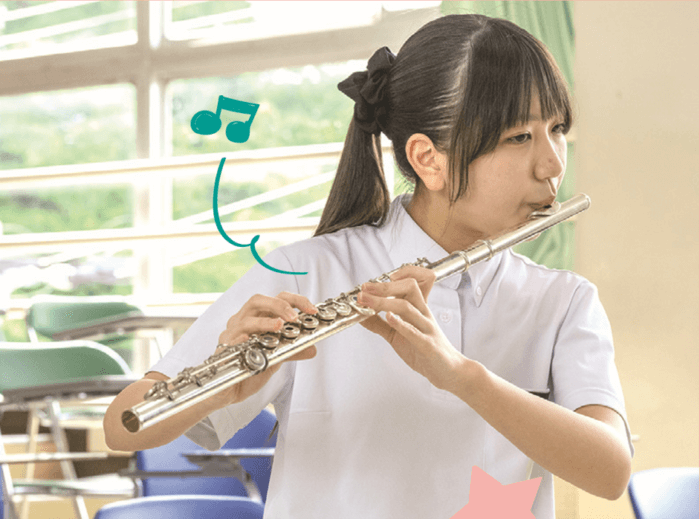 「ピアノ・声楽・フルート・クラリネット・ホルン・ヴァイオリン・打楽器・総合音楽」から専攻を選択し、能力に応じたレッスンを受けることができます。
