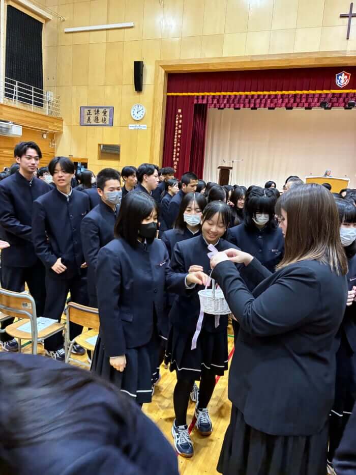 第一体育館にて修養会と創立記念式が行われました。